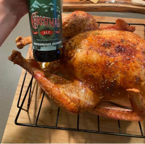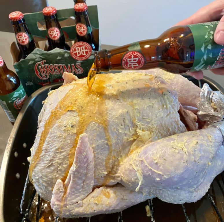 About every 30 – 40 minutes baste your turkey with your butter & Christmas Ale mixture.