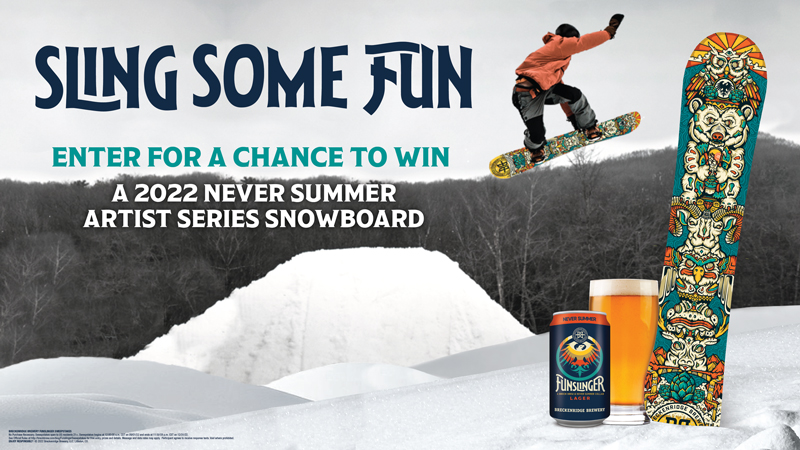 Enter to win a 2022 Breckenridge Brewery x Never Summer Snowboard