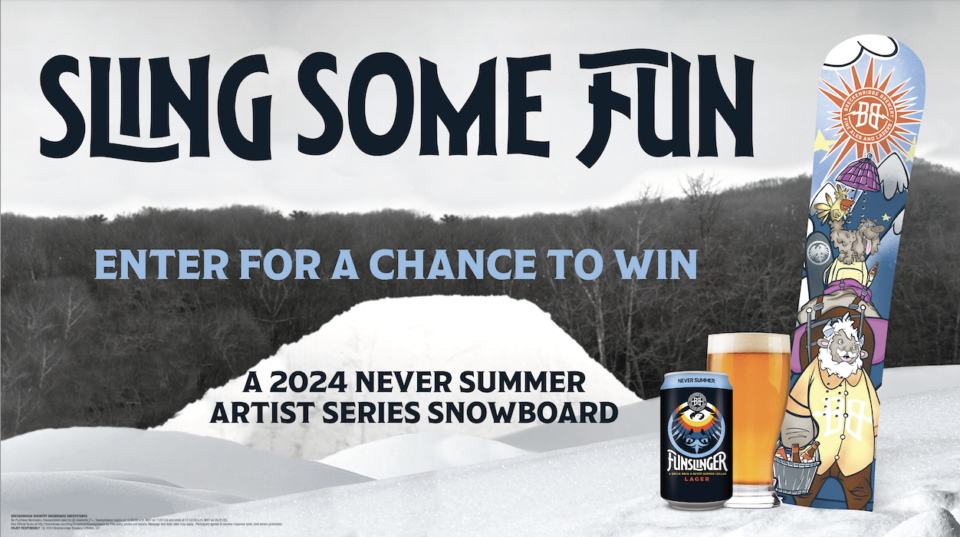 Prize (5 total): Each winner will receive one (1) 2024 Breckenridge Brewery x Never Summer 156cm Snowboard. Approximate Retail Value (“ARV”) is $600.00. If a winner cannot accept the prize as specified, prize will be forfeited and will be awarded to an alternate winner. Total ARV of all prizes is $3,000.00. Any difference between stated value and actual value will not be awarded.