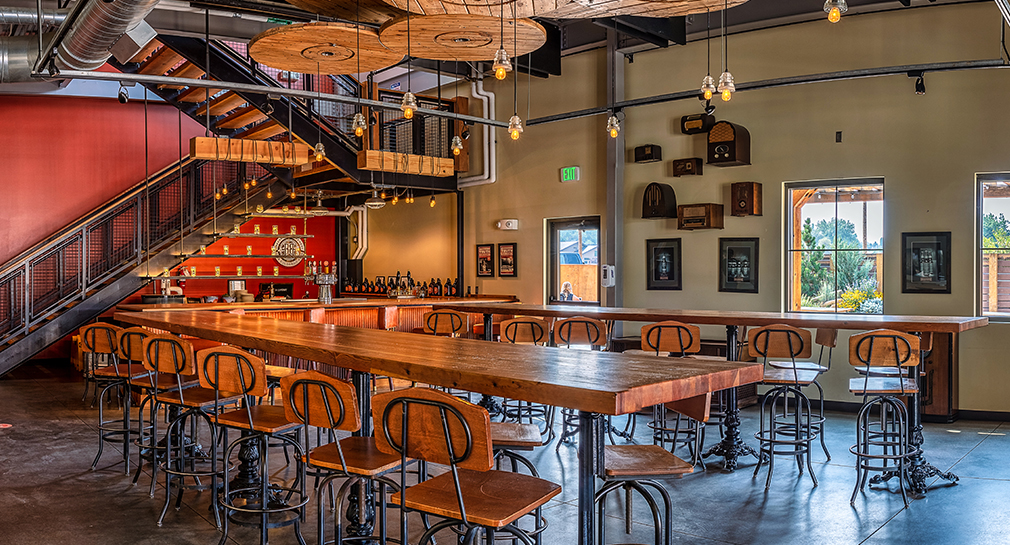 Enjoy a meal in our rustic dining room or on the cozy back porch overlooking the mountains and wash it all down with beer brewed right here! Challenge a few friends to lawn games in our beer garden, or just hang out by the fire pits. Our house is all yours.